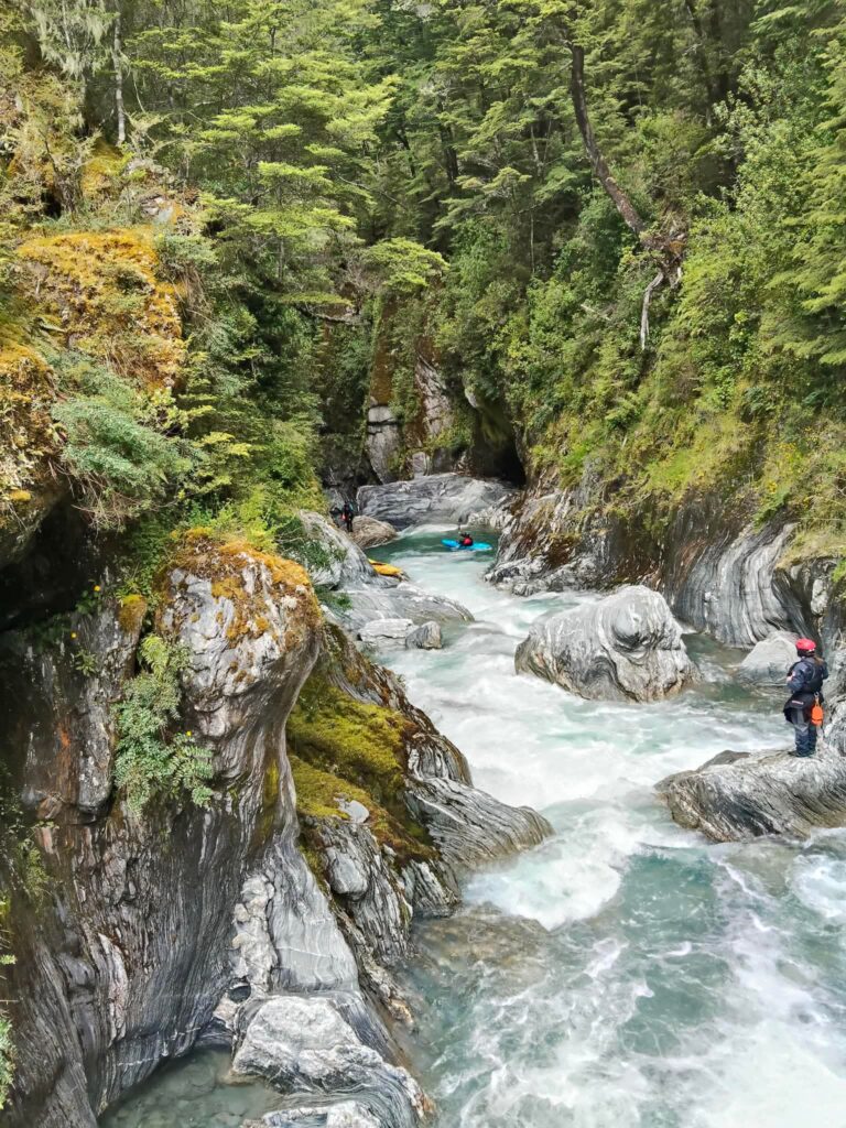 Expect steep boulder gardens, narrow gorges, and continuous hazards. Canyon walls rise to 200 m. Undercuts and tree debris are present throughout. Water levels can be high and require ongoing assessment and problem solving.