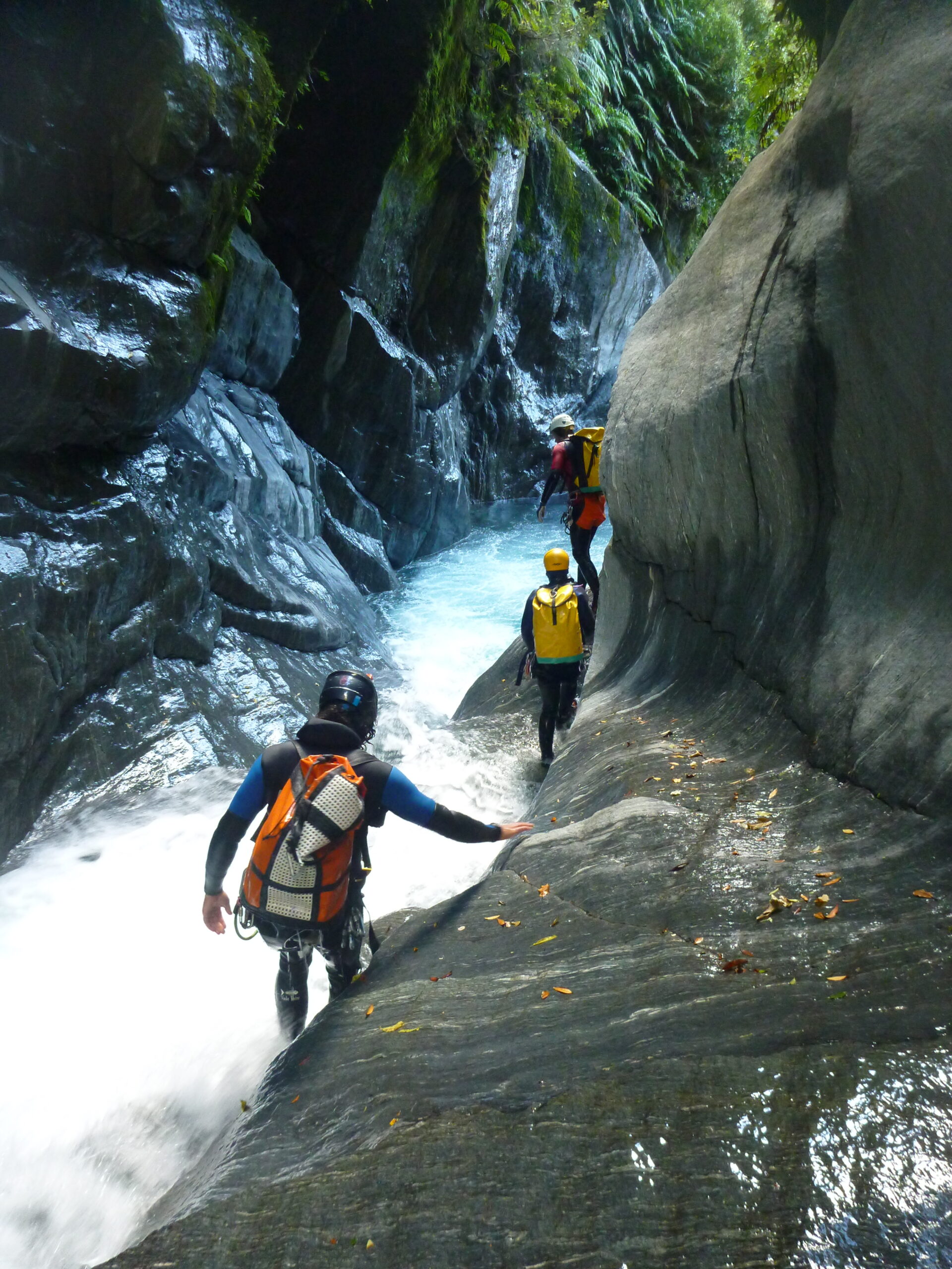Big, watery, beautiful, long, technical.. Jumps galore into pumping whitewater. Huge pools, powerful waterfalls… This canyon is a pure gem in NZ!