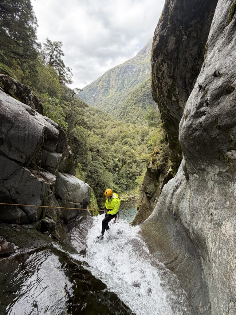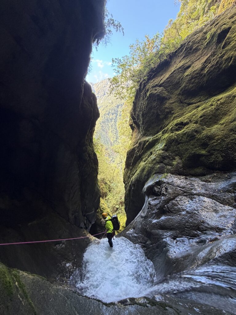 In an avalanche & flood prone catchment – requires 5mm Dyneema for V-Thread anchors, sling for natural anchors plus a drill and bolts to be on the safe side.