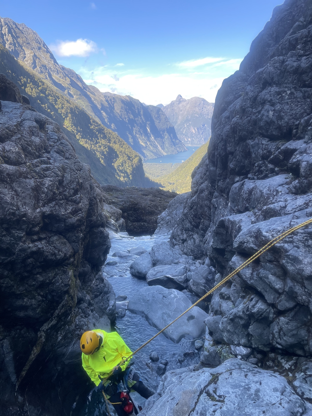 In an avalanche & flood prone catchment – requires 5mm Dyneema for V-Thread anchors, sling for natural anchors plus a drill and bolts to be on the safe side.