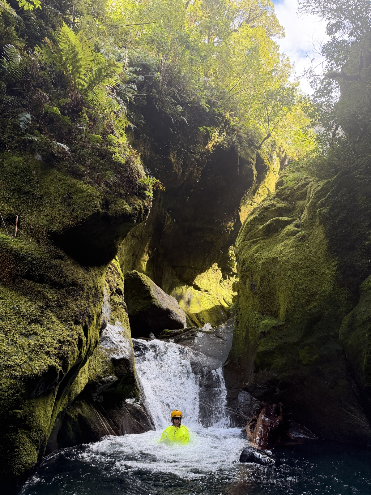 A canyon of two halves – an open upper, with about 20 slides and a 4-5 raps, and an enclosed lower section, with slides to 15m and jumps to 10m..