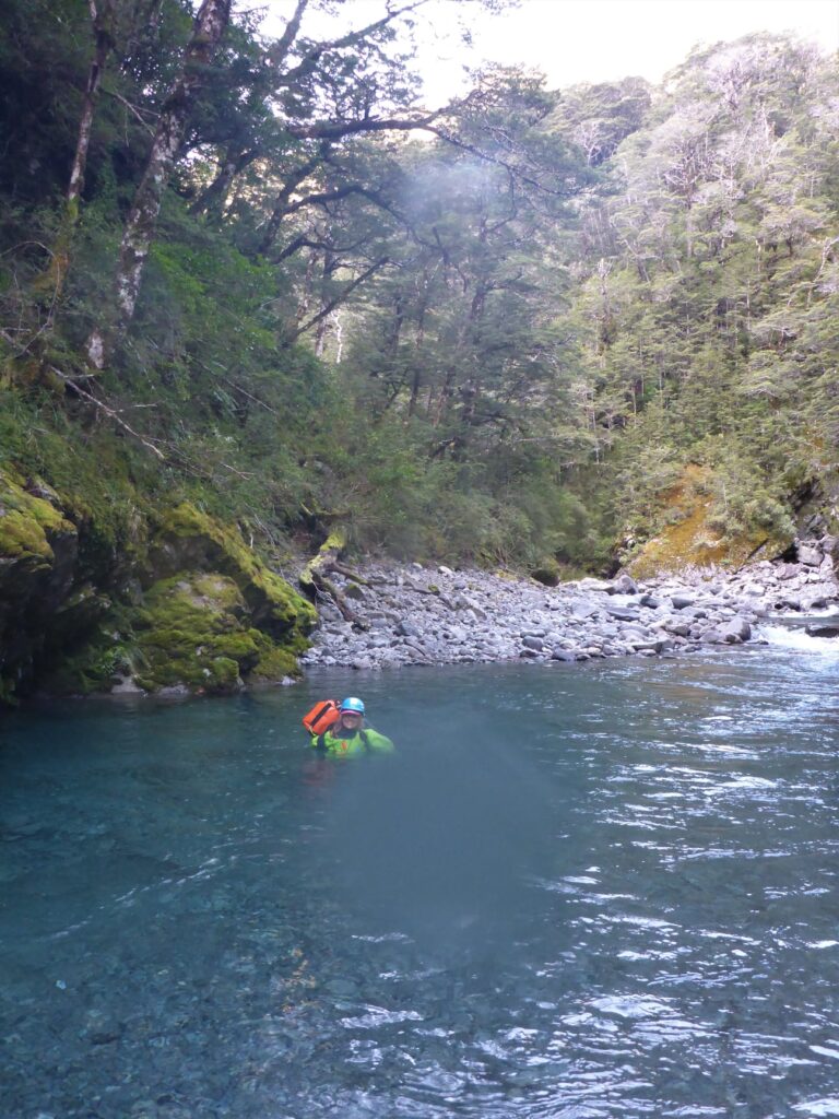 The canyon back to the river is dramatic in parts with steep walls, wildlife [saw a fat chamois close by] and smooth bedrock lower down. Low flow but very beautiful geology. A great day out in such an amazing location” – Nola Collie