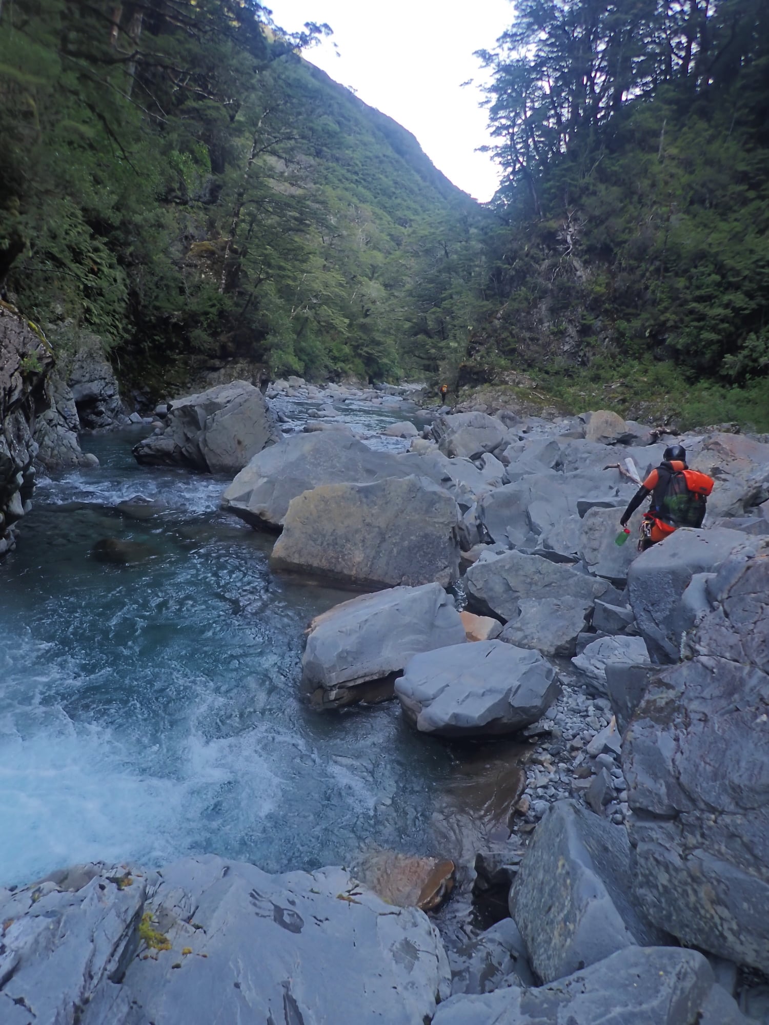 The canyon back to the river is dramatic in parts with steep walls, wildlife [saw a fat chamois close by] and smooth bedrock lower down. Low flow but very beautiful geology. A great day out in such an amazing location” – Nola Collie